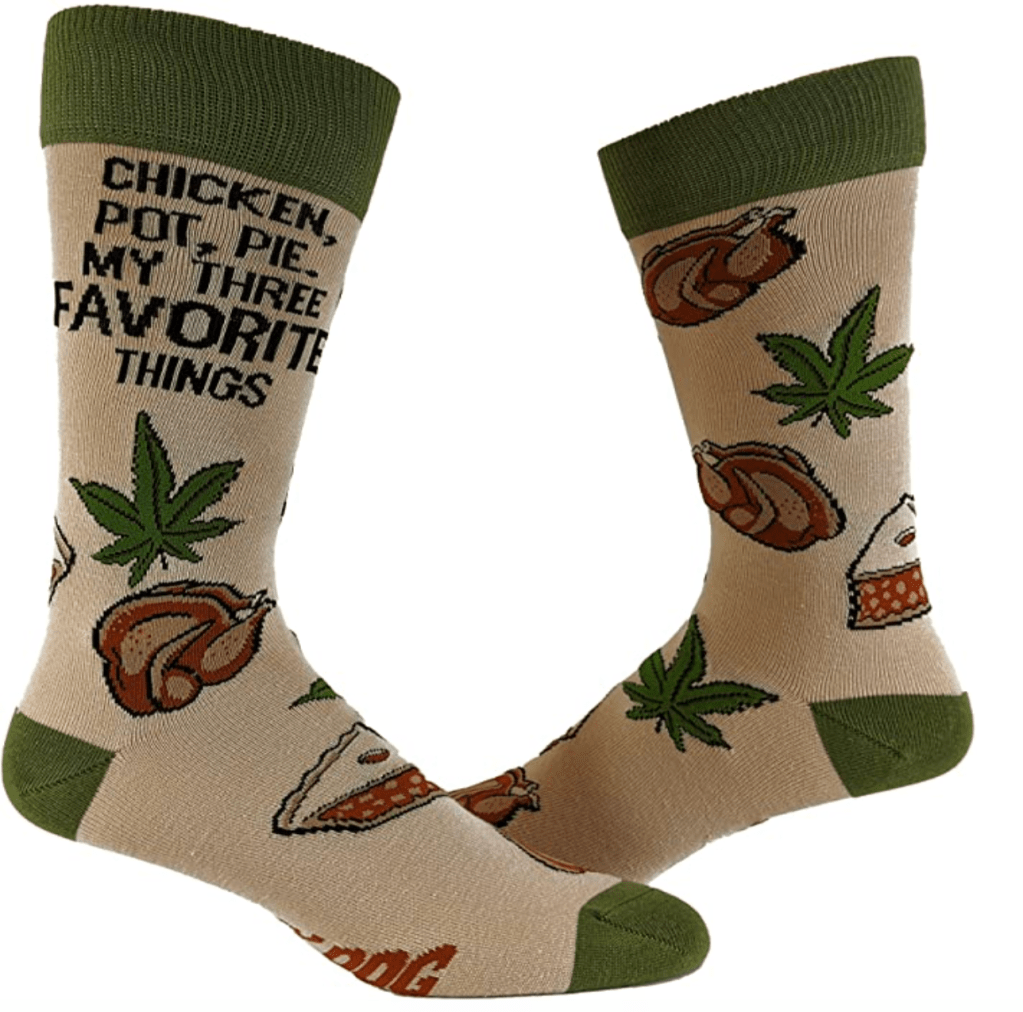 Ok seriously, who comes up with these?! And what are they smoking, because I want some. If you love chicken, pot and pie then these socks were literally made for you. I feel like these would be a HUGE hit at Thanksgiving, although Turkey Pot Pie would be even more accurate and I’m not sure that’s a thing. If it is, comment below.